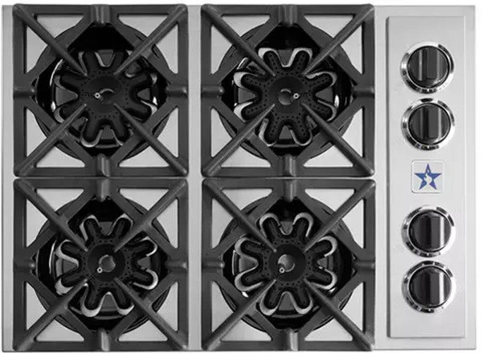 BlueStar 30" Gas Drop-In Cooktop-Stainless Steel with full motion grates, 4 burners, ULTRANOVA™ and NOVA™Read More