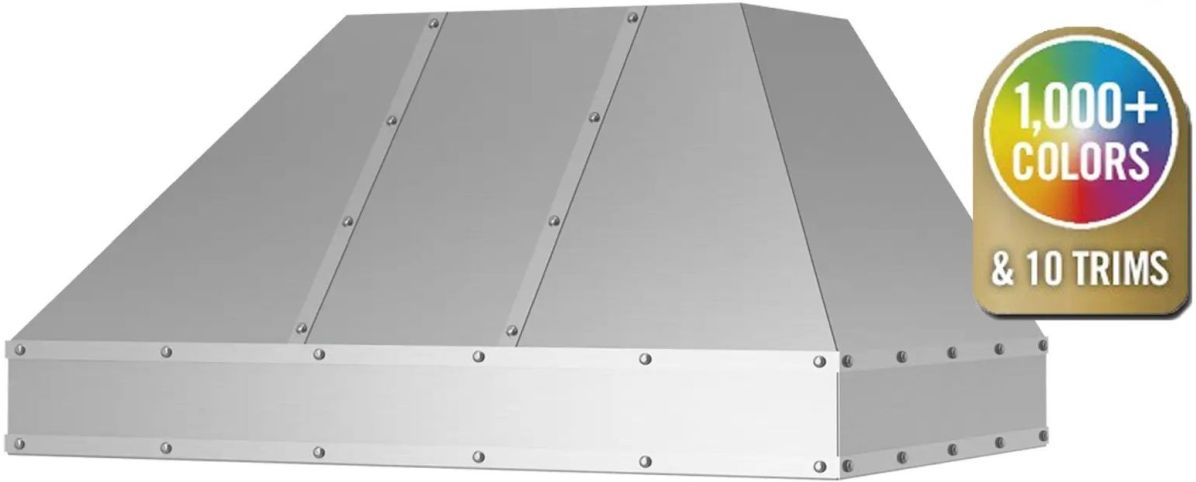 Metals & Strapping: Change your hood material from stainless steel to 14 different custom metals options including brass and copper. Plus, enhance your ventilation hood design by adding custom strapping and rivets to compliment other finishes in your kitchen.